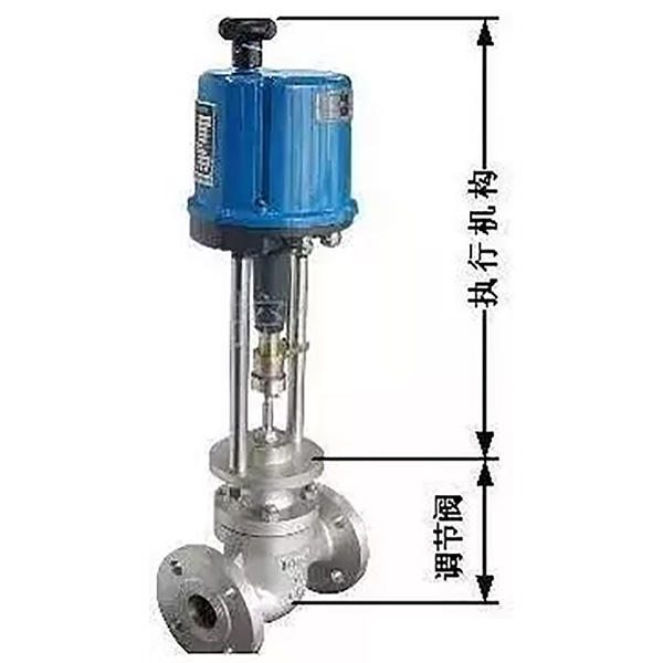 如圖是電動調(diào)節(jié)閥的典型外形,它由兩個可拆分的執(zhí)行機構(gòu)和調(diào)節(jié)閥(調(diào)節(jié)機構(gòu))部分組成。上部是執(zhí)行機構(gòu),接受調(diào)節(jié)器輸出的0~10mADC或4~20mADC信號,并將其轉(zhuǎn)換成相應(yīng)的直線位移,推動下部的調(diào)節(jié)閥動作,直接調(diào)節(jié)流體的流量。各類電動調(diào)節(jié)閥的執(zhí)行機構(gòu)基本相同,但調(diào)節(jié)閥(調(diào)節(jié)機構(gòu))的結(jié)構(gòu)因使用條件的不同類型很多,最常用的是直通單閥座和直通雙閥座兩種。